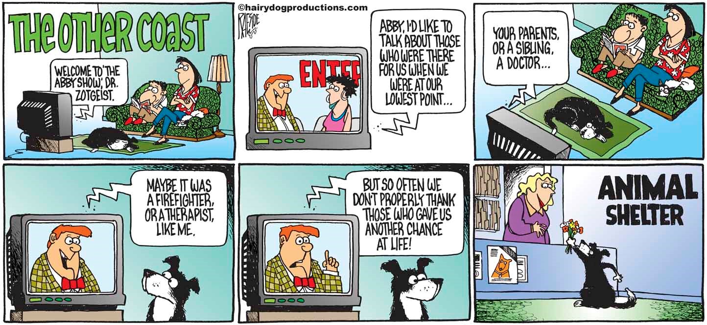 By all means, right click and save any of these cartoons to share on Social Media. We'd love to get the word out about adopting pets.